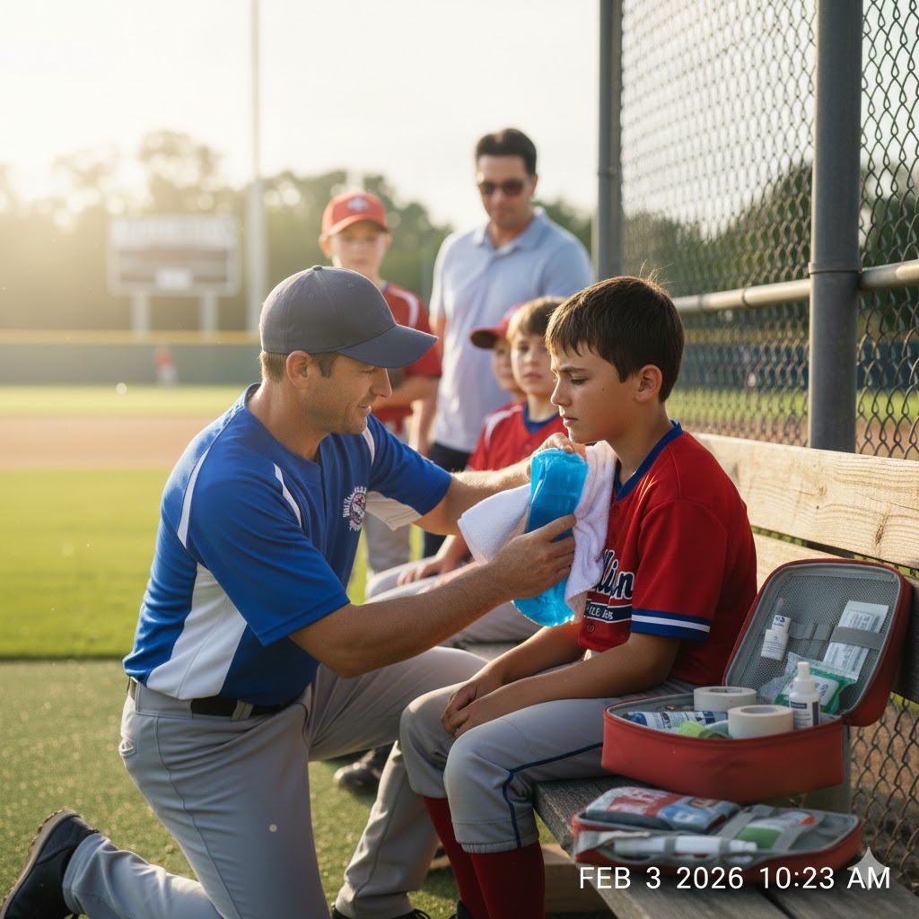 Environmental Awareness: Utilizing high-SPF sunscreen, wide-brimmed hats in the dugout, and ensuring constant access to water stations.