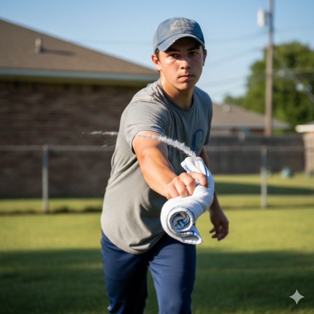 One of the most effective ways to train fast pitching at home without putting excessive stress on your arm is the Towel Drill. Instead of throwing a baseball, you hold a small kitchen towel between your index and middle fingers. This drill allows you to go through a full-speed delivery, focusing on "extension"—how far in front of your body you release the ball. The resistance provided by the towel helps build the "whip" in your arm and ensures you are finishing your motion correctly. It is a favorite for Wellington pitchers during the rainy winter months when outdoor throwing is limited.